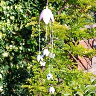 A decorative windchime for garden or home this pretty pink flower & butterfly design chime would make a lovely gift.