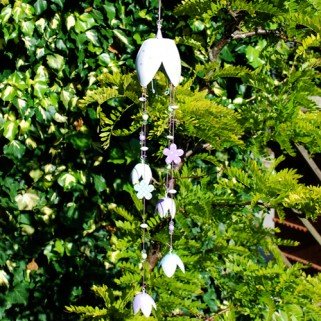 A decorative windchime for garden or home this pretty lilac, blue & white flower design chime would make a lovely gift.