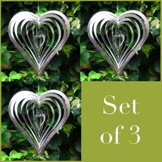 Set Of Three Heart Shaped Steel Windspinners For The Garden