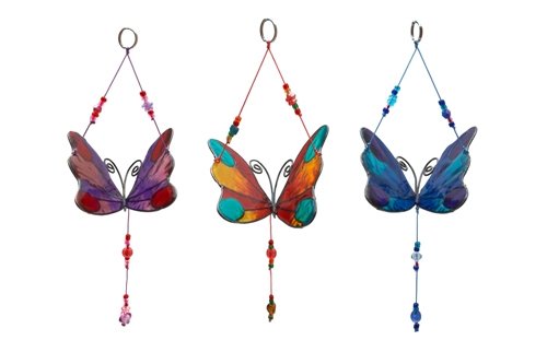 Set Of Three Hanging Butterfly Window Suncatcher - Purple, Blue & Red