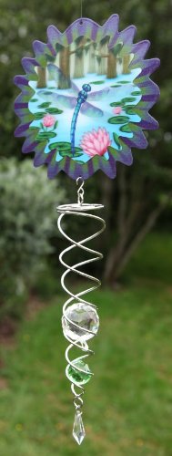 This hypnotizing Animated Crystal Twister is topped with a holographic Animated Dragonfly design made of 20 gauge steel and powder coated for durability and weather resistance.