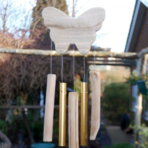 An unusual wind chime made from driftwood & metal this butterfly design chime would look at home in any garden or home